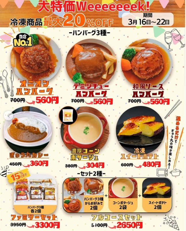 【16~22日限定】おうちでぎゅう丸!冷凍商品20%OFFウィーク開催中です