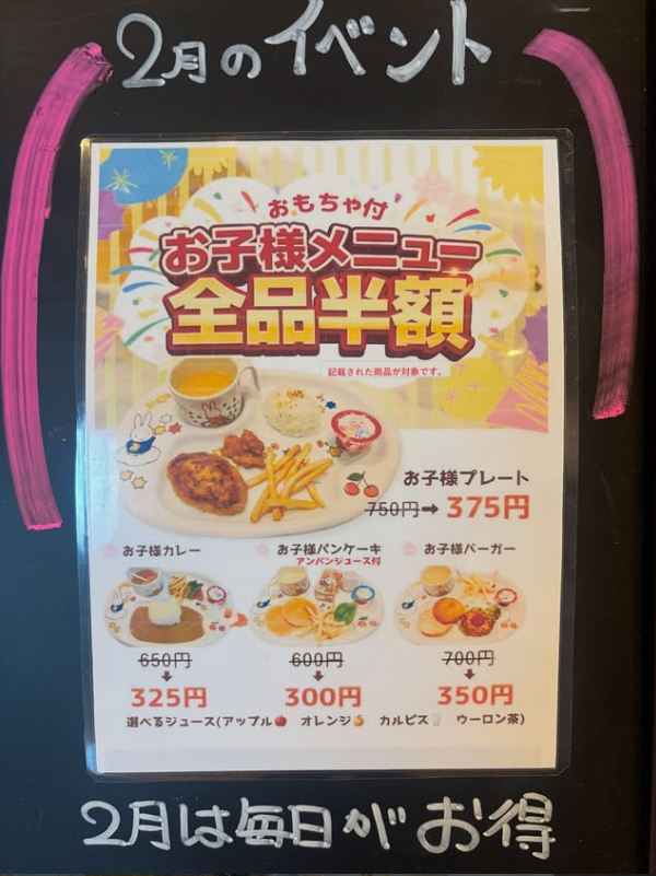 2月限定の『いつでもお子様メニュー半額』は残り二日‼️