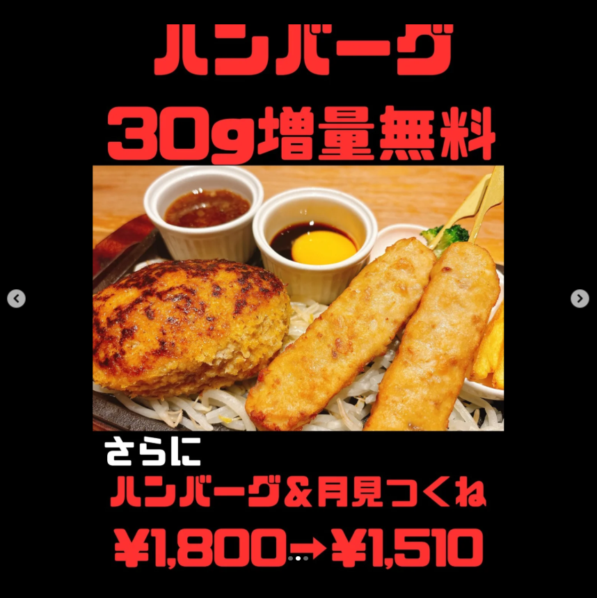 ハンバーグ30g増量無料と✨
